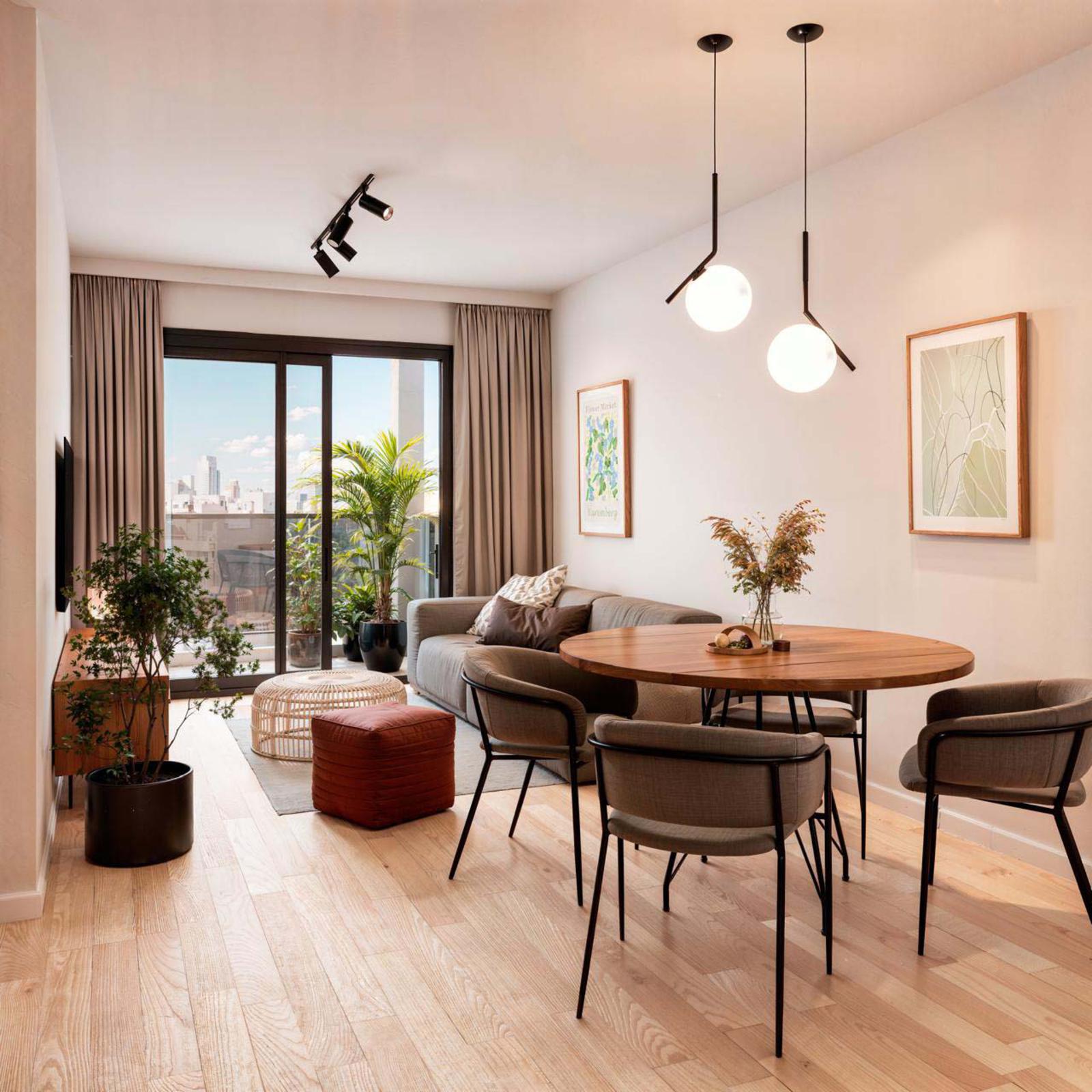 Pisos de porcelanato símil madera de primera calidad en toda la unidad.