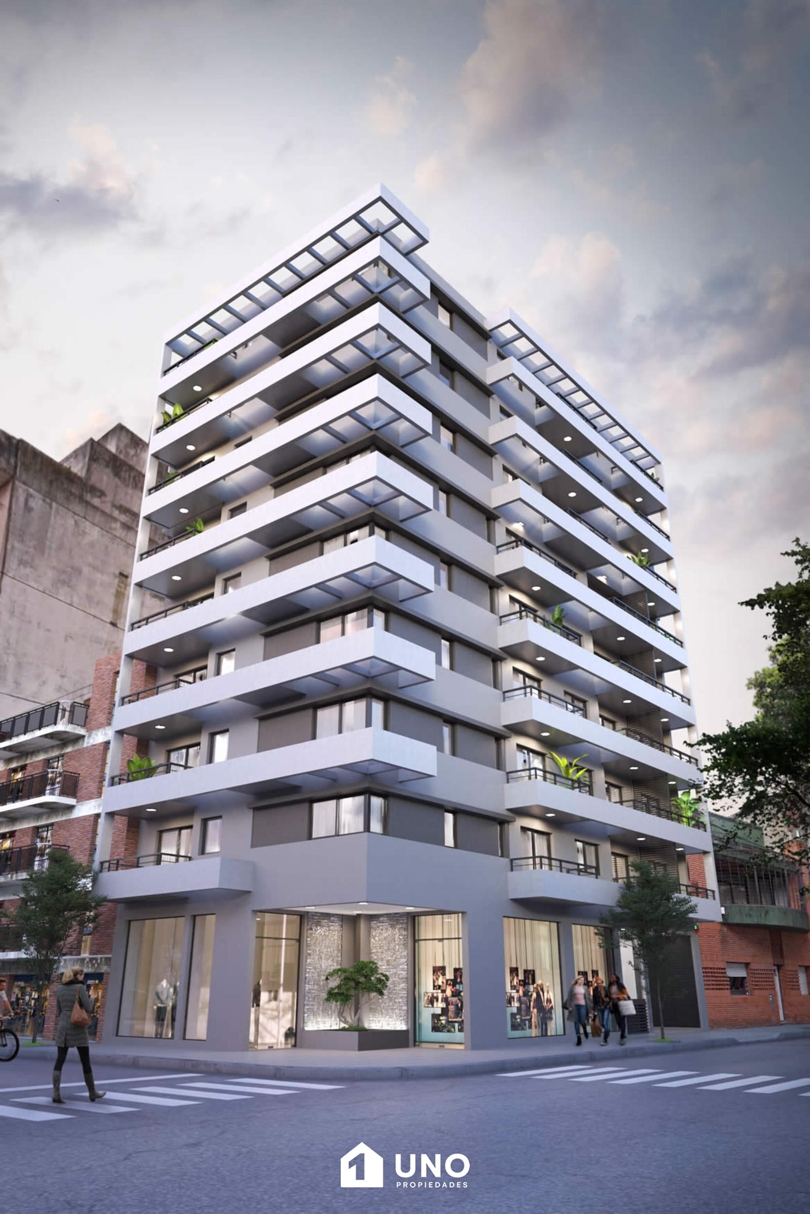 Edificio de 8 plantas con unidades de 1 dormitorio hasta el 5º piso (4 unidades por planta) y unidades de 2 dormitorios en pisos 6º a 8º (3 unidades por planta). Amenities en terraza, Picina, solarium, quincho con parrillero.