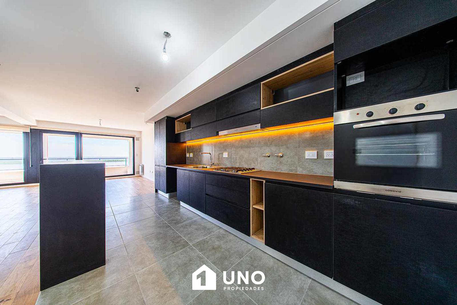 Cocina con mesada de granito, amoblamiento bajo mesada y alacenas de primera línea.