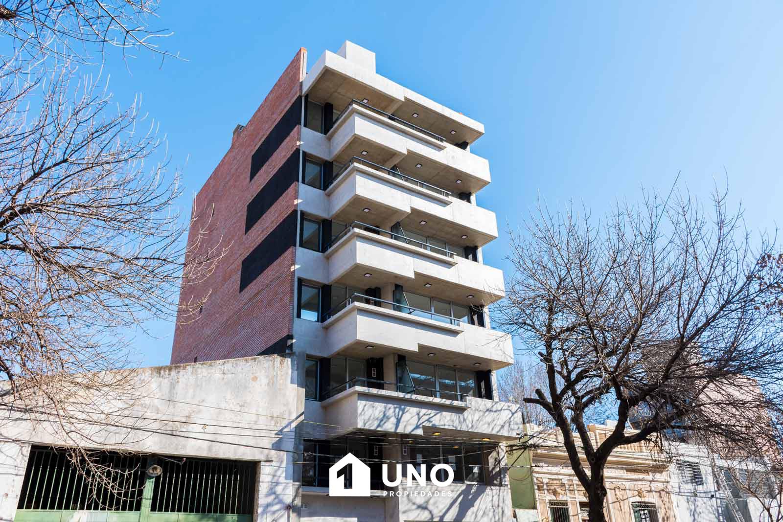 Edificio de 6 pisos con 3 unidades por planta, 2 de un dormitorio y un monoambiente. En el 1º piso hay deptos con patio.