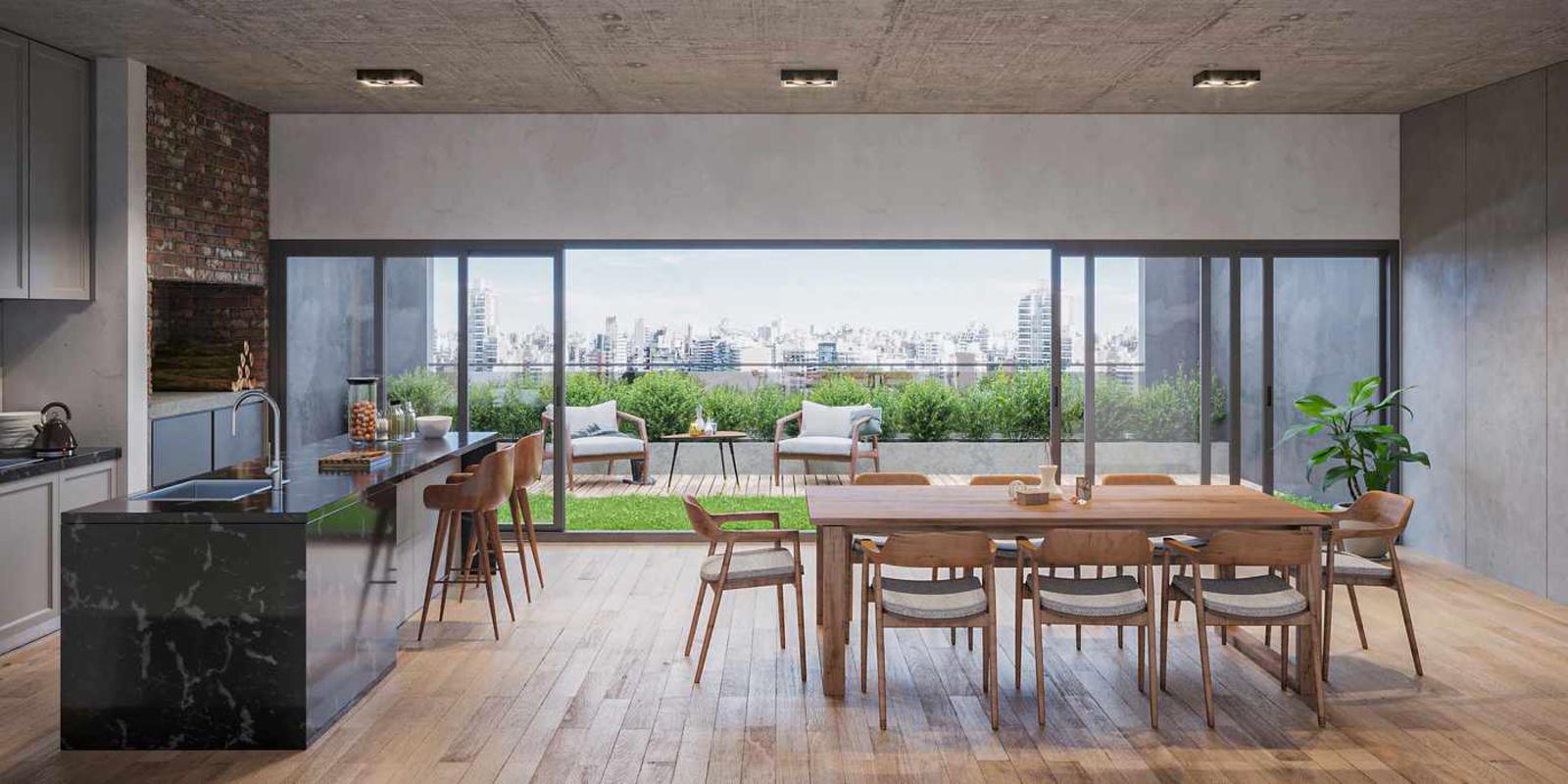 Edificio de 2 torres y 8 pisos. Hay cocheras en planta baja y amenities en la azotea, el edificio tiene seguridad con control de acceso y monitoreo las 24 horas.
