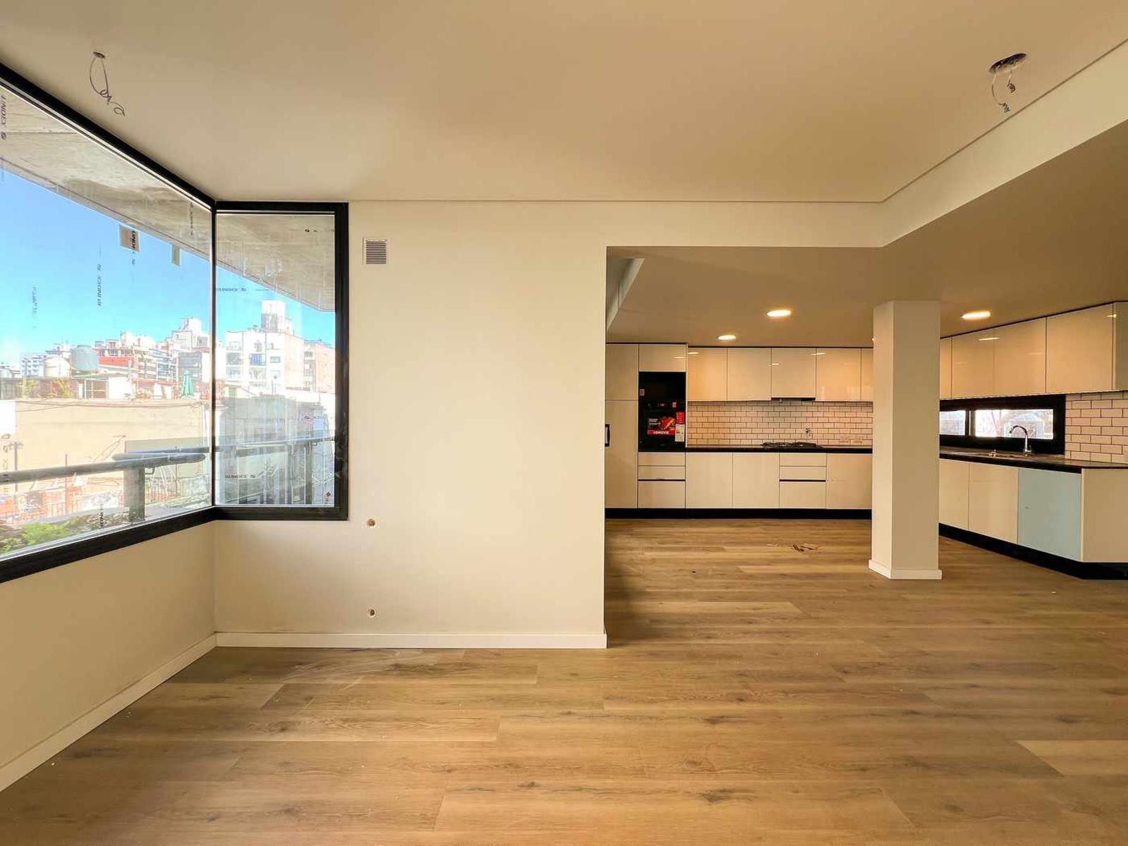 Pisos de porcelanato en living, cocina comedor, baños, balcones y de simil madera en sector de dormitorios.