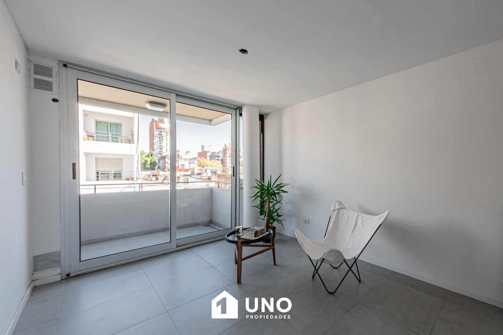 Con ingreso por amplio y luminoso estar/comedor, con acceso a balcón terraza al frente, cocina semi separada por barra desayunador, la mesada en forma de L y ventilación natural, un dormitorio con placard y salida a balcón a la calle. Baño completo.