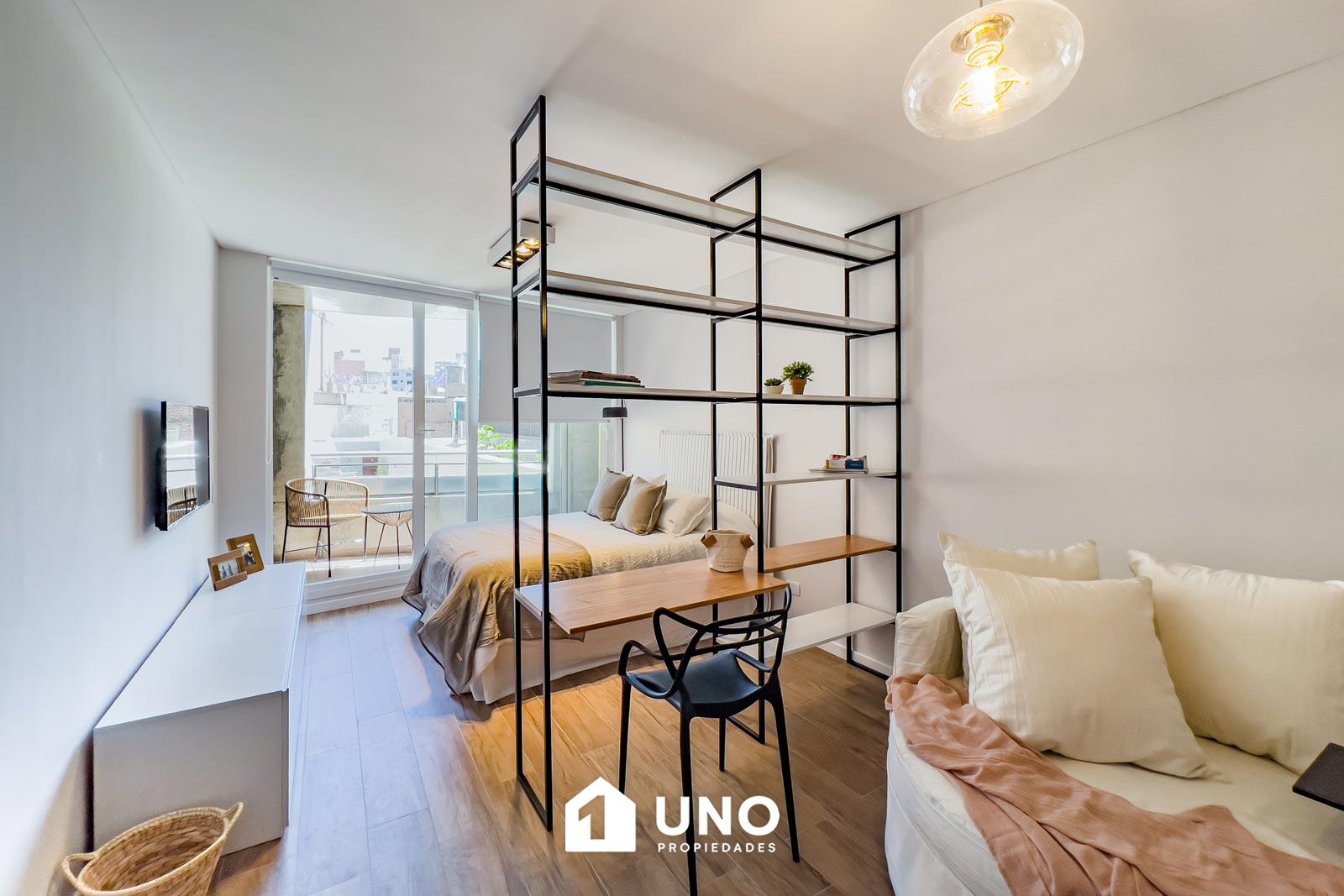 Departamento orientado al norte a estrenar, con excepcional ubicación sobre la Av. Pellegrini. Amplio Loft con la cocina integrada, totalmente amoblada, barra desayunador, placard divisorio con interiores terminados, área de descanso, baño con bañera y balcón terraza al contrafrente.