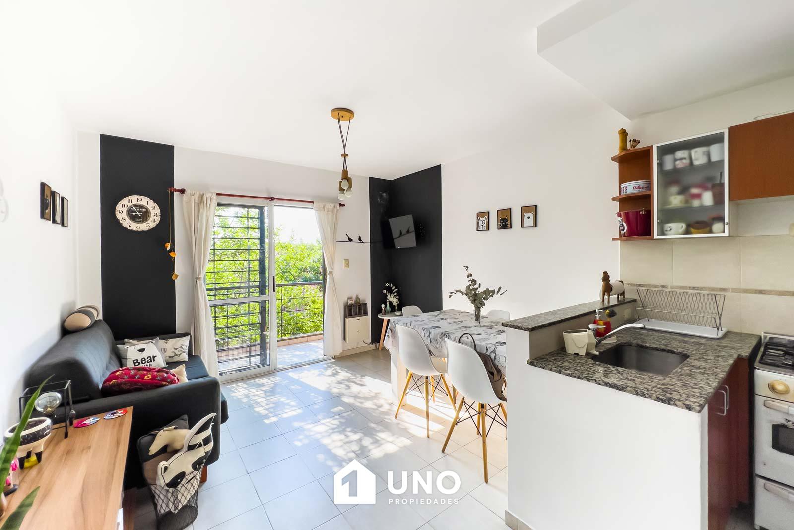 Semipiso externo orientado al Este, con Ventilación Cruzada . Es un 3º piso por escalera y se compone de: estar comedor con cocina separada por barra, 1 dormitorio con placard, 1 baño completo y balcón al frente. Buen estado general.-