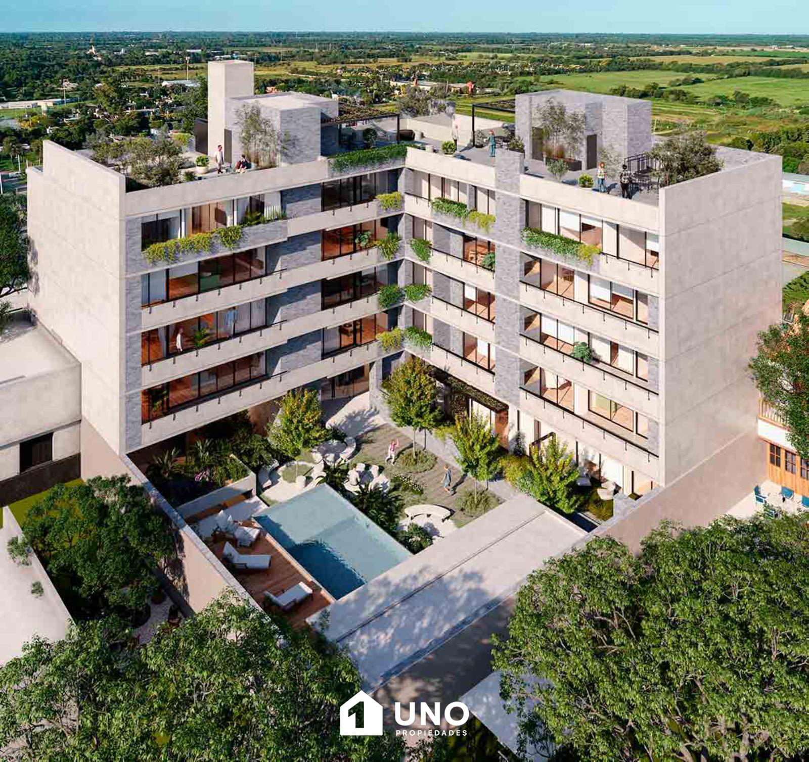 El complejo Giardino ofrece un jardín central con abundante y colorida vegetación, además de una destacada variedad de amenities, servicios y espacios verdes: piscina, solárium, gimnasio, sala de coworking, espacios recreativos, terrazas, jardines y parrilleros.