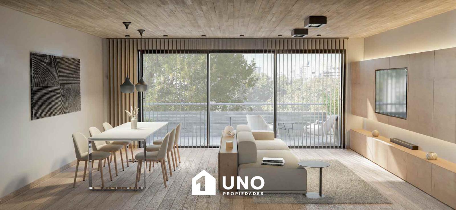 La unidad cuenta con calefacción por losa radiante en todos los ambientes (caldera individual por depto), puerta blindada de seguridad, horno empotrado y anafe a gas marca Longvie, aberturas de aluminio con doble vidrio hermético (DVH), sistema de oscurecimiento motorizado, pisos de porcelanato y placard con interiores terminados.