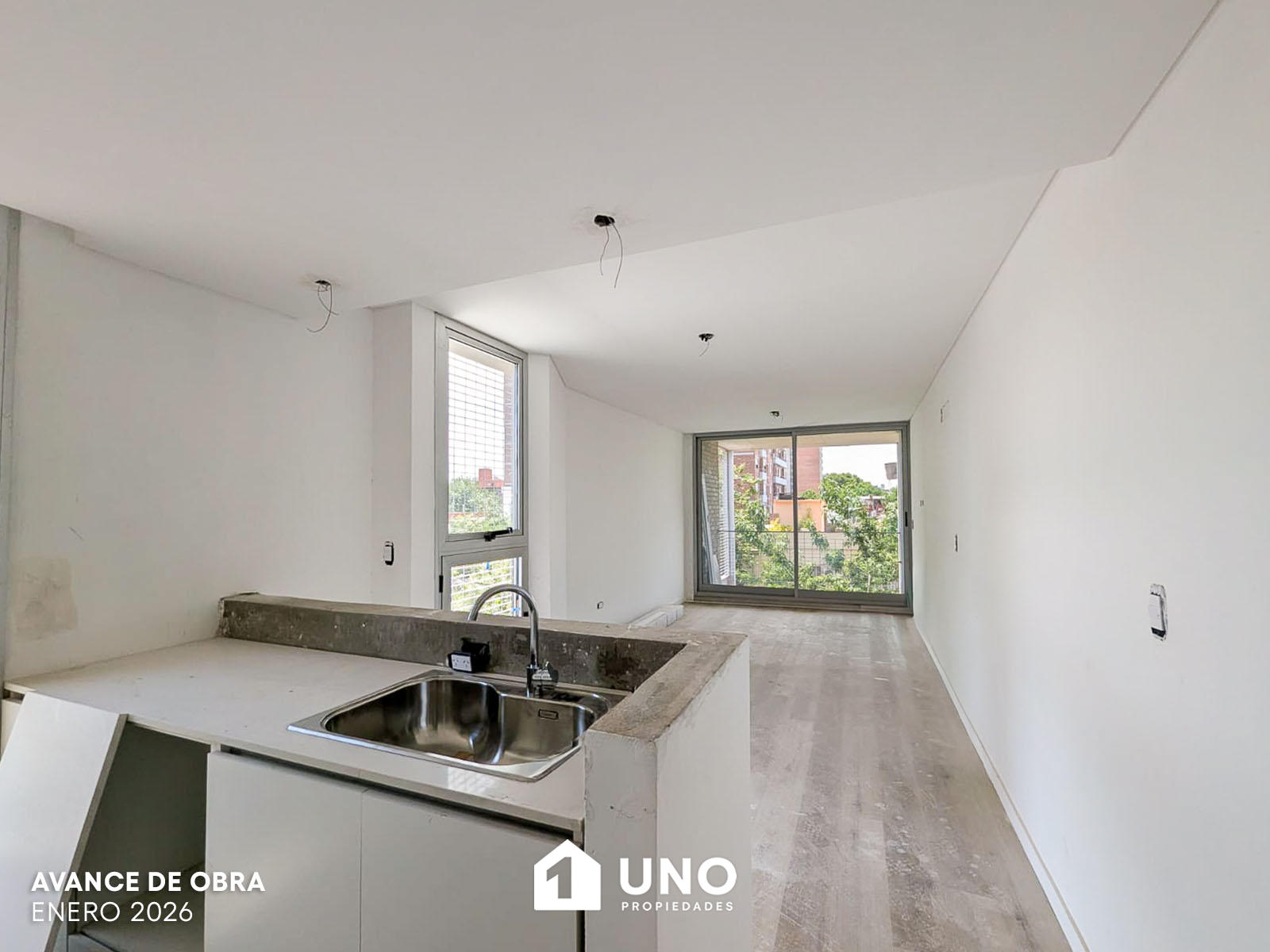 Se compone de un amplio estar/comedor con salida a un balcón terraza al frente, cocina semiseparada completamente amueblada, dos dormitorios: uno en suite y otro con balcón al frente, además de un segundo baño.