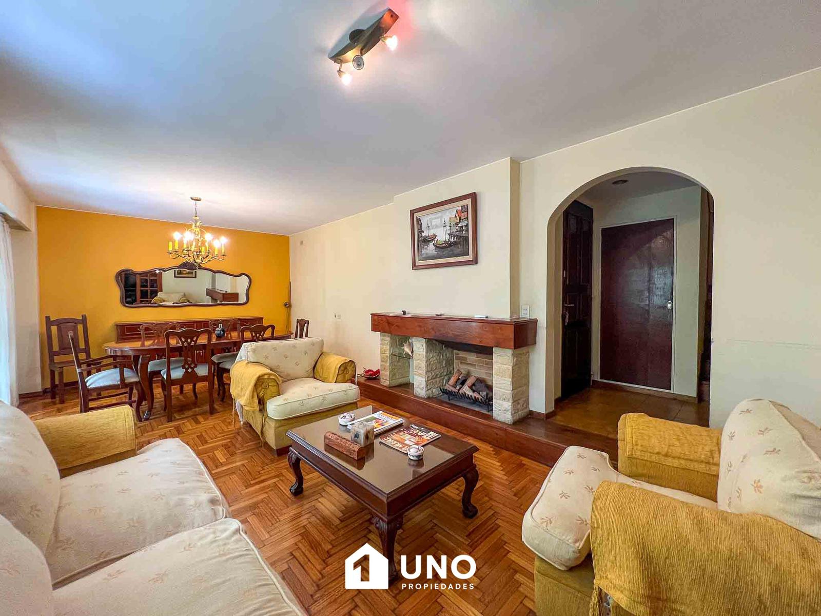 La planta baja tiene un living/comedor grande con salida a un balcón. La cocina está separada y tiene un comedor diario y lavadero independiente. Además, hay un baño completo y un espacio que podés usar como oficina.