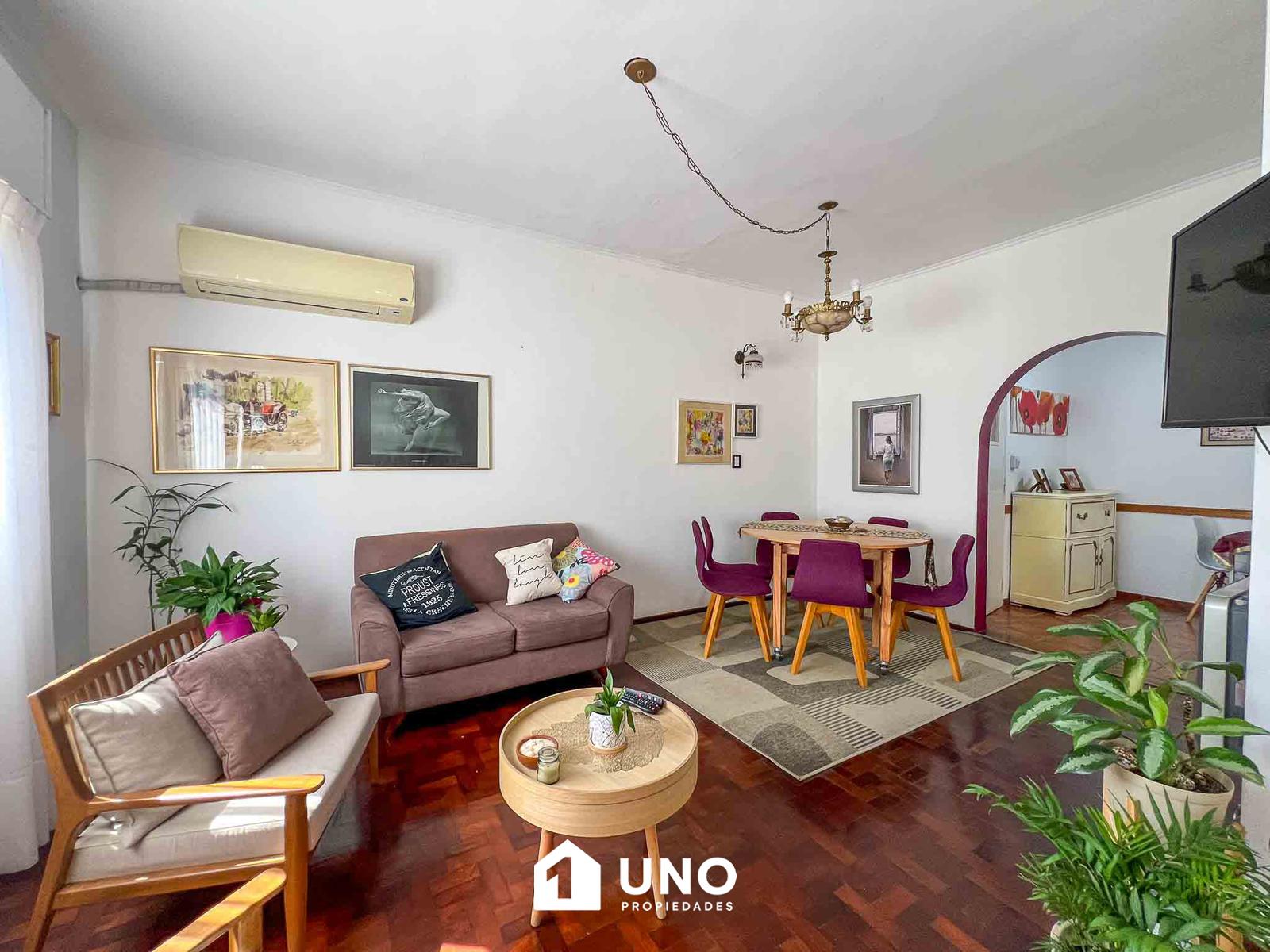 Ingreso por escaleras a la primer planta, esta cuenta con un espacioso e iluminado hall de recepción, amplio estar/comedor, la cocina totalmente separada de cómodas dimensiones, con ventilación natural, comedor diario y toilette para la recepción. Dos confortables dormitorios (uno con salida a un balcón terraza) y baño con bañera.