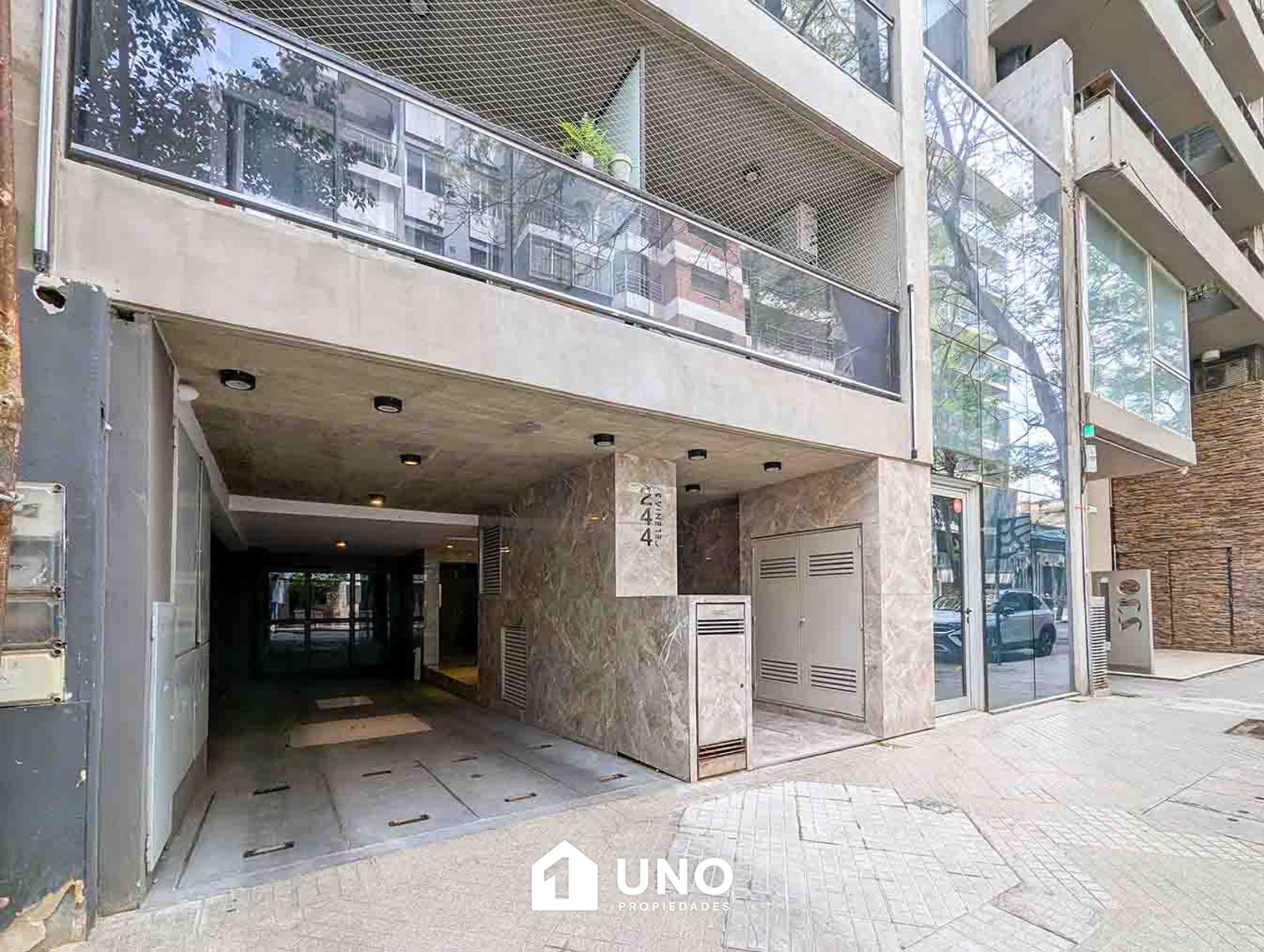 Cochera con techo de hormigón, ubicada en el subsuelo del edificio Celenia 3. Portón automático, montacoches, cámaras de seguridad en el ingreso y cómodo espacio de maniobras.
