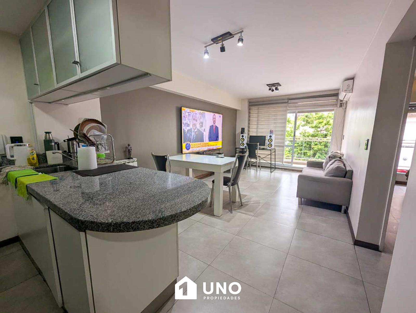 Departamento externo ubicado en el primer piso. Compuesto por un amplio estar/comedor con cocina semiseparada con barra desayunadora y balcón corrido que aporta gran luminosidad y ventilación. Dormitorio con placard, un baño y calefacción por radiadores en todos sus ambientes.