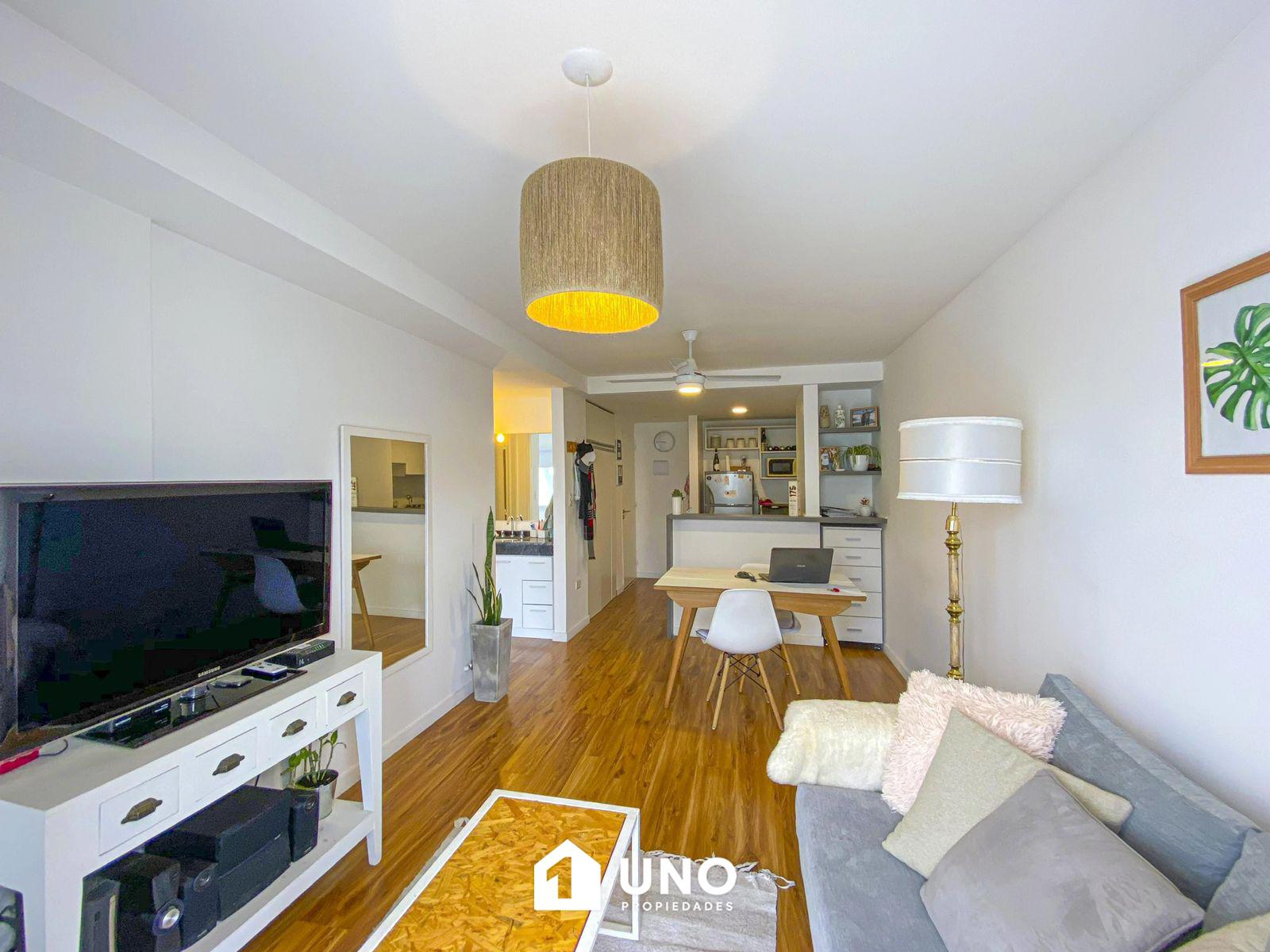 Departamento de un dormitorio ubicado en barrio Lourdes, con orientación este y excelente iluminación. La unidad cuenta con un estar/comedor con cocina integrada, dividida por una barra desayunadora y con salida al balcón al frente. Dormitorio con placard y baño con antebaño. Cochera incluida en el valor y terraza de uso común con parrillero.