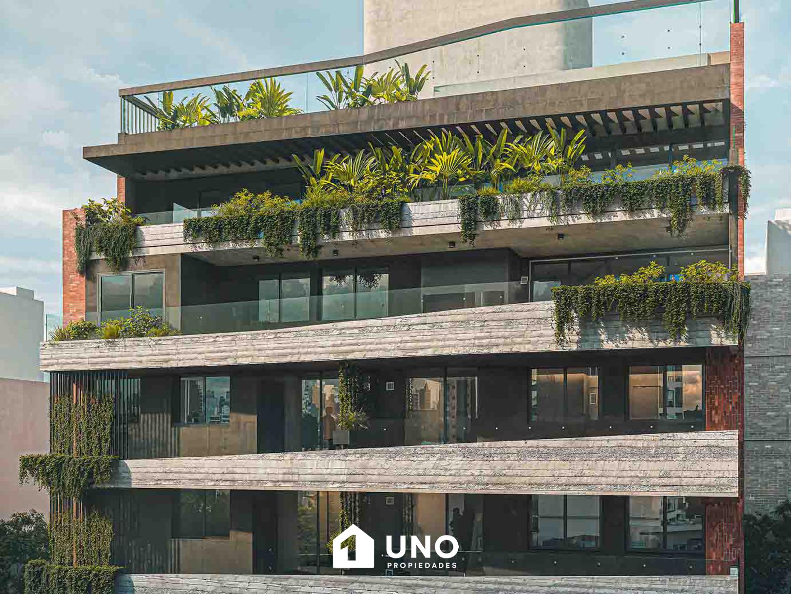 Amenities: gimnasio, 2 SUM con parrilleros, solárium, piscina, kid zone (equipado por Crucijuegos), 2 rooftop, living fogonero y área de coworking.