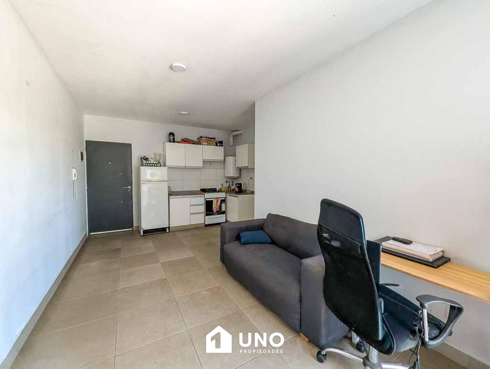 Departamento contrafrente orientado al norte, alquilado hasta 11/2026. Estar/comedor con cocina integrada, 1 dormitorio con placard, baño y balcón. En azotea hay una terraza de uso exclusivo con parrillero (30m2). El edificio tiene una terraza de uso común con parrillero.