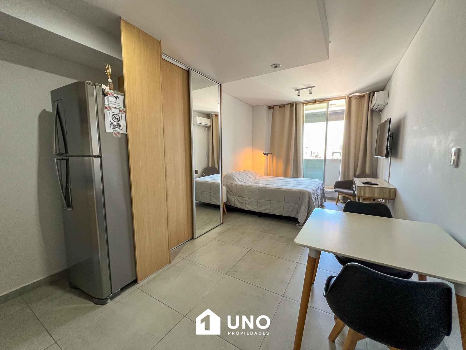 Ambiente único compuesto por cocina integrada, placard, balcón con lavadero y baño con bañera.